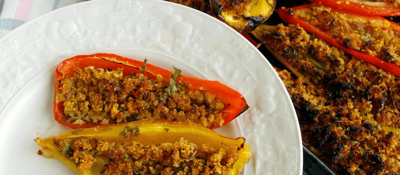 Gevulde puntpaprika met rundergehakt en gezonde knoflooksaus